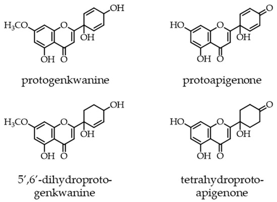 Examples of natural protoflavones with different moieties in their B-ring. A symmetric dienone structure, as in protoapigenone, is prerequisite of a strong cytotoxic activity.