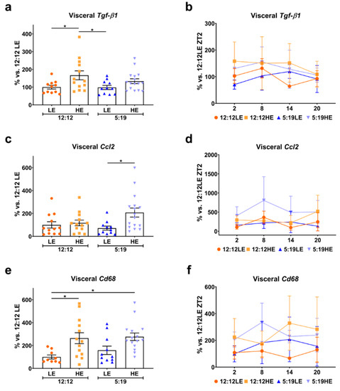 2.4. High-Energy Diet Drives Inflammation in Visceral Adipose Tissue
