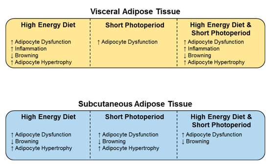 High-Energy Diet and Shorter Light Exposure Drives Markers of Adipocyte Dysfunction in Visceral and Subcutaneous Adipose Depots of Psammomys obesus