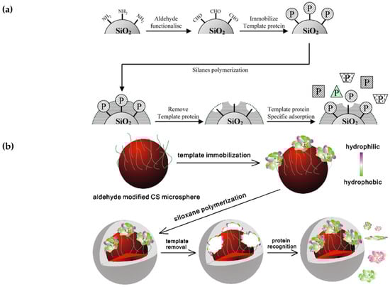 - Mahajan, R.; Rouhi, M.; Shinde, S.; Bedwell, T.; Incel, A.; Mavliutova, L.; Piletsky, S.; Nicholls, I.A.; Sellergren, B. Highly Efficient Synthesis and Assay of Protein-Imprinted Nanogels by Using Magnetic Templates. Angew. Chem. Int. Ed. 2019, 58, 727–730. [Google Scholar] [CrossRef] [PubMed]