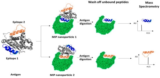 Epitope mapping: imprinting of the target protein (antigen), digestion of the protein to produce a peptide–polymer complex; isolation the peptide–polymer complex; and sequencing the attached peptide(s).