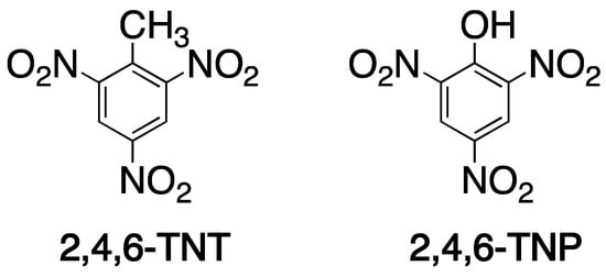 Once the polymerization process is complete, a subsequent template removal is required to free the imprinted sites [57]. Large templates [12] and the highly cross-linked nature of MIPs [66] together have negative impacts on the release of template molecules [43,67]. An inefficient template removal results in subsequent “template leakage” or “template bleeding” that may contribute to false positive signals in sensing [2] and poor separation in chromatography [68]. Approaches to solve these problems include the use of dummy templates and surface imprinting [12]. To date, the dummy imprinting strategy using a template structural analog (auxiliary template) produces satisfactory outcomes [69,70]. Moreover, the dummy template represents an effective solution in cases when the original template is a dangerous or unstable material, or is very expensive [71,72]. An example of such a case lies in the development of MIPs selective for TNT, which were fabricated using trinitrophenol (TNP) as a dummy template [71]. The resultant MIP demonstrated high sensitivity and selective binding capabilities (Figure 5). Unfortunately, suitable dummy templates are not always available.