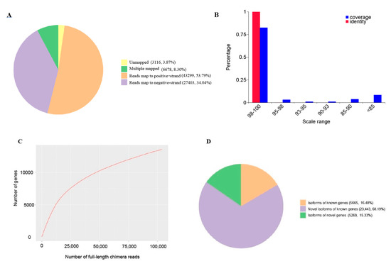 - Abdelghany, S.E.; Hamilton, M.; Jacobi, J.L.; Ngam, P.; Devitt, N.; Schilkey, F.; Benhur, A.; Reddy, A.S.N. A survey of the sorghum transcriptome using single-molecule long reads. Nat. Biotechnol. 2016, 7, 11706. [Google Scholar]