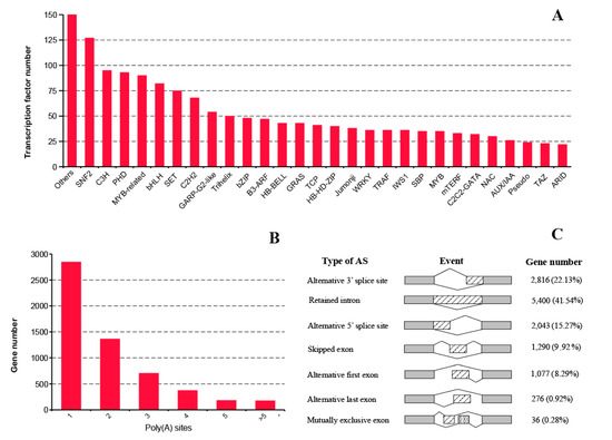 2.5. Transcription Factor, Alternative Polyadenylation, and Alternative Splicing Analyses