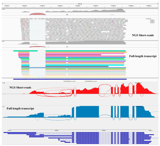 - Li, Y.; Dai, C.; Hu, C.; Liu, Z.; Kang, C. Global identification of alternative splicing via comparative analysis of SMRT- and Illumina-based RNA-seq in strawberry. Plant J. 2017, 90, 164. [Google Scholar] [CrossRef]