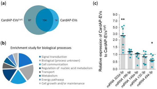 2.4. Unstimulated and Cytokine Stimulated CardAP-EVs Differ in Their miRNA Profile