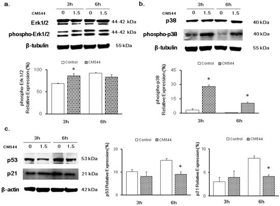 2.3. Modulation of MAPKs and p53 in the Presence of CM544