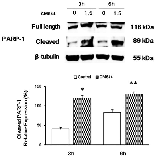2.4. CM544 Causes PARP-1 Activation after 3 h of Treatment