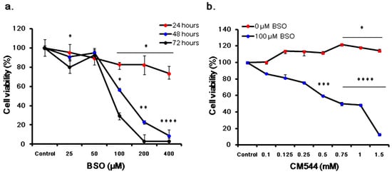 2.6. Cell Viability of CM544-Exposed Cells in the Presence of BSO