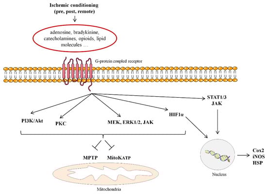 - Heusch, G. Molecular basis of cardioprotection: Signal transduction in ischemic pre-, post-, and remote conditioning. Circ. Res. 2015, 116, 674–699. [Google Scholar] [CrossRef] [PubMed]