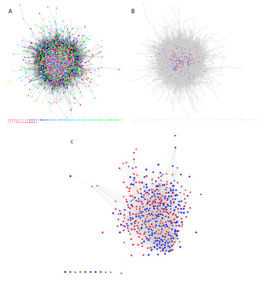 - Shannon, P.; Markiel, A.; Ozier, O.; Baliga, N.S.; Wang, J.T.; Ramage, D.; Amin, N.; Schwikowski, B.; Ideker, T. Cytoscape: A software environment for integrated models of biomolecular interaction networks. Genome Res. 2003, 13, 2498–2504. [Google Scholar] [CrossRef] [PubMed]