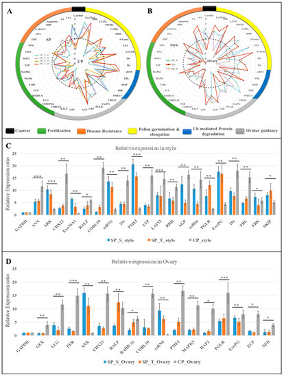 2.7. Tissue-Specific qRT-PCR Expression Dynamics during Pollen-Pistil Interaction