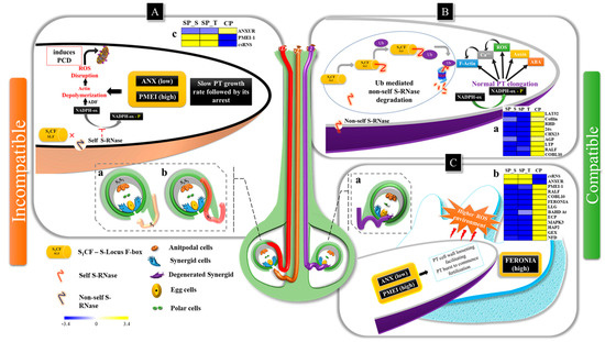 - Zheng, Y.-Y.; Lin, X.-J.; Liang, H.-M.; Wang, F.-F.; Chen, L.-Y. The Long Journey of Pollen Tube in the Pistil. Int. J. Mol. Sci. 2018, 19, 3529. [Google Scholar] [CrossRef] [PubMed]
