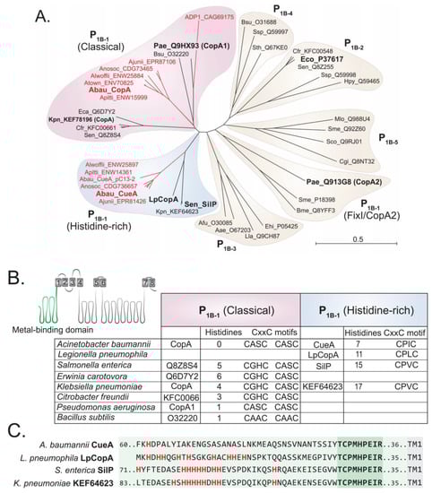 - Arguello, J.M.; Gonzalez-Guerrero, M.; Raimunda, D. Bacterial transition metal P(1B)-ATPases: Transport mechanism and roles in virulence. Biochemistry 2011, 50, 9940–9949. [Google Scholar] [CrossRef] [PubMed]