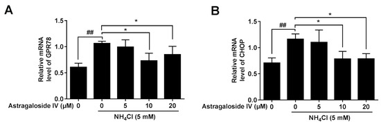 2.5. Effects of Astragaloside IV on mRNA Expression of Endoplasmic Reticulum Stress Markers (CHOP and GPR78) Induced by Ammonia in Bovine Mammary Epithelial Cells