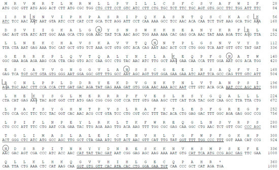 A BLAST search approach was used to retrieve the vertebrate st8sia6 nucleotide sequences with significant homology to the previously described mammalian sequences (human ST8Sia VI AJ621583 [41] and mouse ST8Sia VI AB059554 [42], from the genomic and TSA divisions of the GenBank®/EBI databases at the National Center for Biotechnology Information (NCBI) [31,35]. The amino acid sequence analysis was performed using the software of Expert Protein Analysis System (ExPASy; Swiss Institute of Bioinformatics, Switzerland; website (https://www.expasy.org/, accessed on: 30 January 2019). Hydropathy analyses and determination of potential N-glycosylation sites were performed using the servers TM-Pred Prediction of Transmembrane Regions and orientation (https://embnet.vital-it.ch/software/TMPRED_form.html, accessed on: 30 January 2019) and the NetNGlyc 1.0 Internet program (http://www.cbs.dtu.dk/services/NetNGlyc/, accessed on: 30 January 2019) of ExPaSy. Sequence alignments were performed using the clustalW algorithms at the PRABI website (https://npsa-prabi.ibcp.fr/cgi-bin/npsa_automat.pl?page=/NPSA/npsa_clustalw.html, accessed on: 30 January 2019). Phylogeny was determined aligning the known vertebrate ST8Sia sequences with MUSCLE in MEGA7.0 [66].