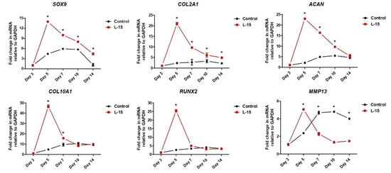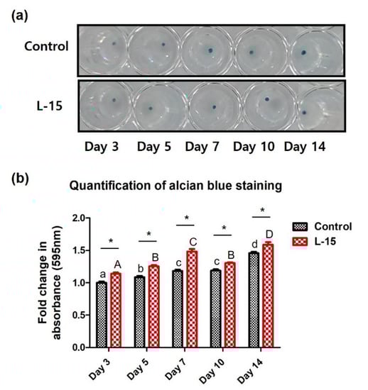 2.4. L-15 Extract Promotes ECM Formation during Chondrogenic Differentiation