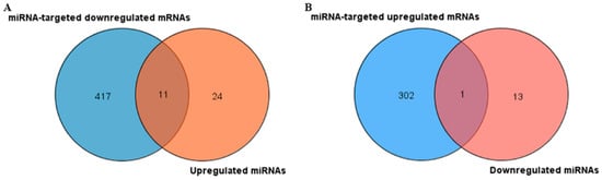 2.3. Identification of miRNA-Influenced DEGs