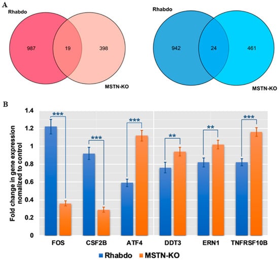 2.5. Differential Expression of Apoptotic Genes between the MSTN-KO and Rhabdo Groups