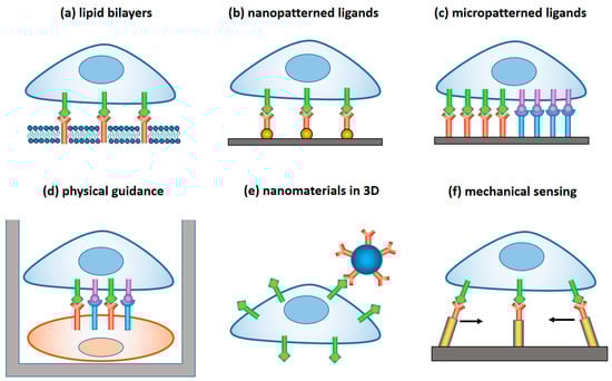 - Schvartzman, M.; Palma, M.; Sable, J.; Abramson, J.; Hu, X.; Sheetz, M.P.; Wind, S.J. Nanolithographic control of the spatial organization of cellular adhesion receptors at the single-molecule level. Nano Lett. 2011, 11, 1306–1312. [Google Scholar] [CrossRef] [PubMed]