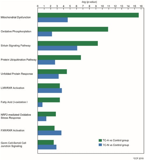 2.3. Biological Pathways Dysregulated in Spermatozoa of Normozoospermic and Asthenozoospermic TC Patients