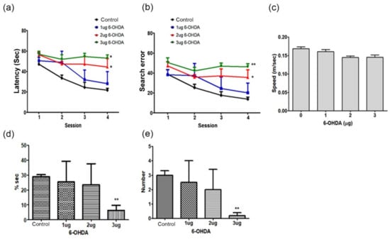 2.2. Cognitive Deficit Induced by MFB Injury Caused by 6-OHDA Injection