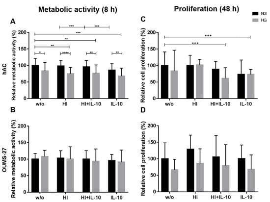 2.2. Glucose Content and Insulin Stimulation Impairs Metabolic Activity and Cell Proliferation