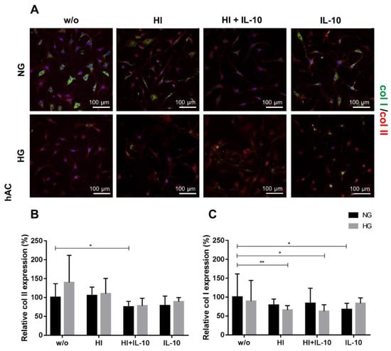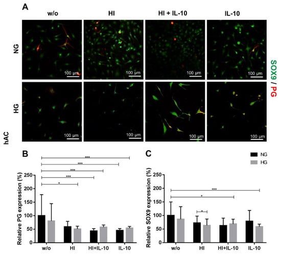 - Muller, R.D.; John, T.; Kohl, B.; Oberholzer, A.; Gust, T.; Hostmann, A.; Hellmuth, M.; Laface, D.; Hutchins, B.; Laube, G.; et al. IL-10 overexpression differentially affects cartilage matrix gene expression in response to TNF-alpha in human articular chondrocytes in vitro. Cytokine 2008, 44, 377–385. [Google Scholar] [CrossRef] [PubMed]