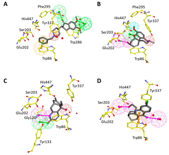 2.4. Selection of Hit Compounds and Their Binding Modes at the active Site of hAChE