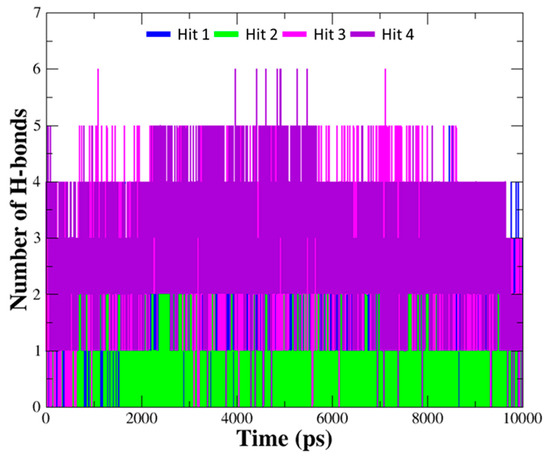 | 3 | Hit 3 | H58—Thr83:O (2.38); N16—Asn87:HD21 (2.74); H40—Gly121:O (3.05); O10—Gly121:HA (2.51); O15—Tyr124:HH (2.56); O10—Ser125:HG (2.25); H40—Ser125:OG (1.81); H60—Glu202:OE2 (2.71); O12—Tyr337:HH (2.16); H52—His447:NE2 (2.55); H53—His447:NE2 (2.72) | Tyr124, Tyr341 | Tyr72, Trp286, Phe297, Phe338 | Asp74, Trp86, Pro88, Gly122, Gly126, Ser203 Glu292, Ser293, Val294, Phe295, Arg296, Gly342 |