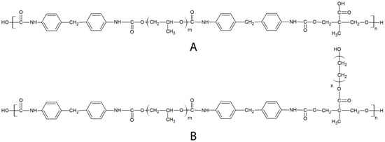- Orban, J.M.; Chapman, T.M.; Wagner, W.R.; Jankowski, R. Easily grafted polyurethanes with reactive main chain functional groups. Synthesis, characterization, and antithrombogenicity of poly(ethylene glycol)-grafted poly(urethanes). J. Polym. Sci. A Polym. Chem. 1999, 37, 3441–3448. [Google Scholar] [CrossRef]