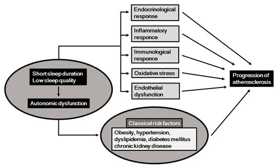 Short sleep duration and low sleep quality, along with resultant autonomic nervous dysfunction may induce progression of atherosclerosis, potentially through endocrinological, immunological, inflammatory, and oxidative response, and endothelial dysfunction.