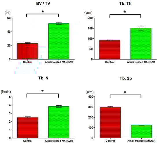 2.2. Alkali Treatment-Induced Bone Differentiation on the NANOZR Surface In Vivo