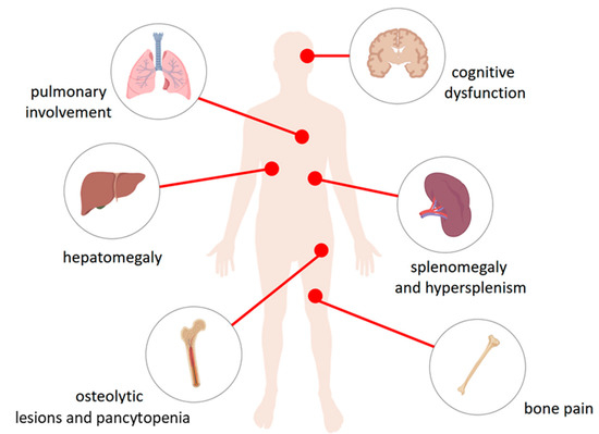 - Stirnemann, J.; Belmatoug, N.; Camou, F.; Serratrice, C.; Froissart, R.; Caillaud, C.; Levade, T.; Astudillo, L.; Serratrice, J.; Brassier, A.; et al. A Review of Gaucher Disease Pathophysiology, Clinical Presentation and Treatments. Int. J. Mol. Sci. 2017, 18, 441. [Google Scholar] [CrossRef]