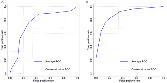 To further assess the robustness of the miRNA panel diagnostic performance, k-fold cross validation was performed using 5-fold cross-validation. Our cirrhosis miRNA panel, combining miRNA-409-3p and miRNA-122-5p, resulted in an AUC of 0.79 (95% CI 0.65–0.93), with a sensitivity of 85%, specificity of 65%, NPV of 76%, PPV of 75%, and overall accuracy of 78% (Figure 4A). Our HCC miRNA panel, combining miRNA-122-5p, miRNA-486-5p, and miRNA-142-3p, resulted in an AUC of 0.91 (95% CI 0.81–1.0), sensitivity of 81%, specificity of 87%, NPV of 80%, PPV of 91%, and overall accuracy of 85% (Figure 4B).