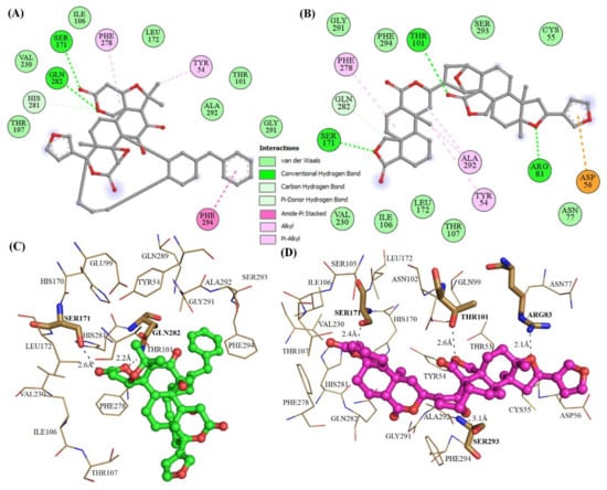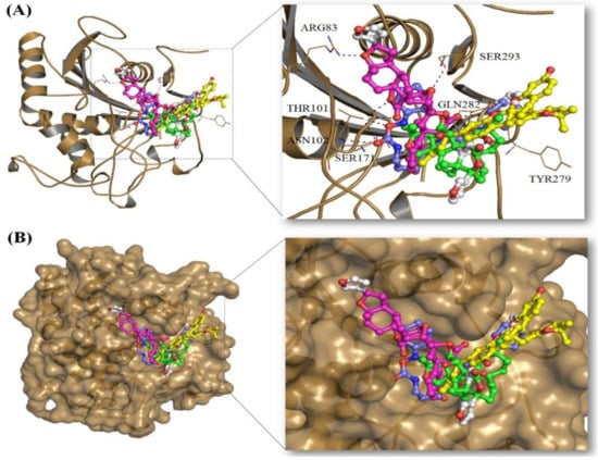 - Trott, O.; Olson, A.J. AutoDock Vina: Improving the speed and accuracy of docking with a new scoring function, efficient optimization, and multithreading. J. Comput. Chem. 2010, 31, 455–461. [Google Scholar] [CrossRef] [PubMed]