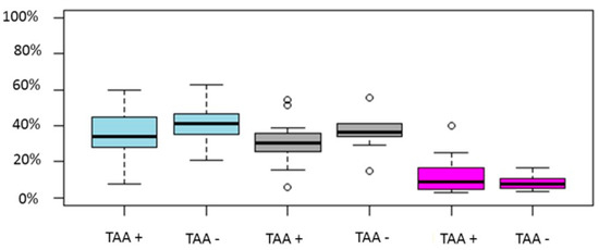 Three studies report on BP rate [26,29,32]. No statistically significant difference was observed. Fourteen studies reported on CP rates [9,11,23,24,25,26,27,28,29,30,31,32,33,34]. Eight of the aforementioned studies were of retrospective nature and the remaining five of prospective. Only three studies observed a statistically significant lower CP rate in the TAA positive group [9,23,26]. These findings are in accordance with three previous meta-analyses performed in the field [35,36,37].