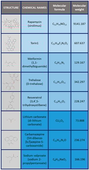 | Drug | Clinical Indications | Pro-Autophagic Mechanism | References |