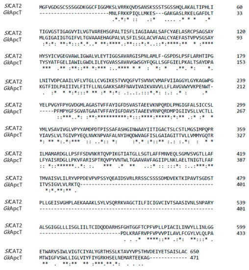The sequences of SlCAT2 and GkApcT were aligned using the software Clustal Omega as described in Section 4.7.