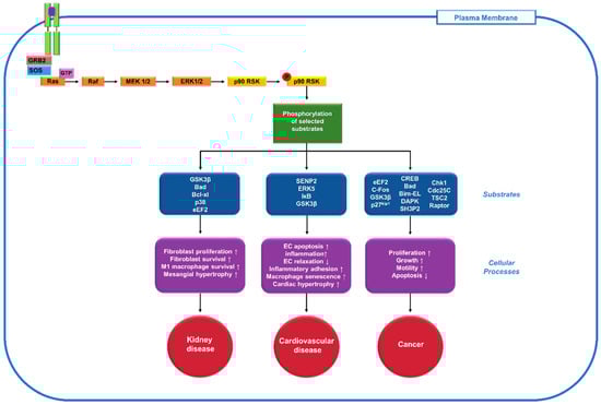 - Anjum, R.; Blenis, J. The RSK family of kinases: Emerging roles in cellular signalling. Nat. Rev. Mol. Cell Biol. 2008, 9, 747–758. [Google Scholar] [CrossRef] [PubMed]