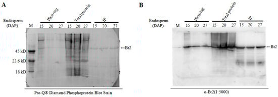 Yu, G.; Lv, Y.; Shen, L.; Wang, Y.; Qing, Y.; Wu, N.; Li, Y.; Huang, H.; Zhang, N.; Liu, Y.; et al. The Proteomic Analysis of Maize Endosperm Protein Enriched by Phos-tagtm Reveals the Phosphorylation of Brittle-2 Subunit of ADP-Glc Pyrophosphorylase in Starch Biosynthesis Process. Int. J. Mol. Sci. 2019, 20, 986. https://doi.org/10.3390/ijms20040986