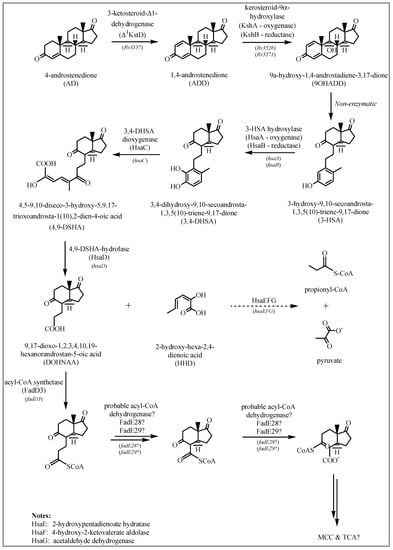 2.1.2. Degradation of Cholesterol: Sterol Ring Degradation