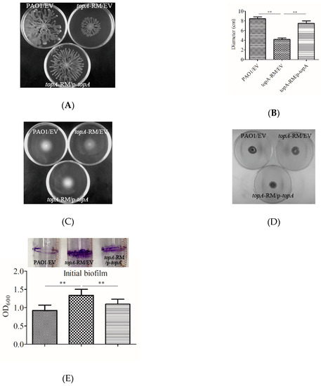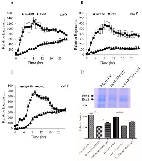 2.2. Impaired TopA Has Pleotropic Effects on T3SS Expression, Phenazine Production, Antibiotic Susceptibility and Biofilm Formation
