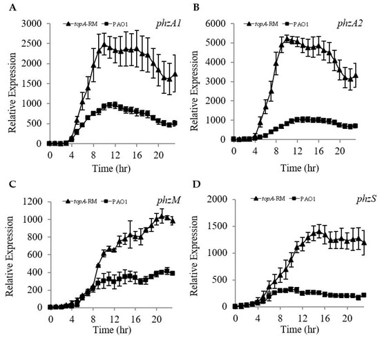 2.6. Quorum Sensing Is Not Involved in the Elevated PYO Production in topA-RM