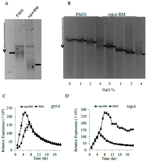 - Ahmed, W.; Menon, S.; Karthik, P.V.; Nagaraja, V. Autoregulation of topoisomerase I expression by supercoiling sensitive transcription. Nucleic Acids Res. 2016, 44, 1541–1552. [Google Scholar] [CrossRef] [PubMed]
