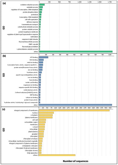 Gene expression was evaluated using the number of differentially expressed genes (DEGs), clustering, and annotation. Differentially expressed genes were identified by using the Blast2GO software (Blast2Go 4.1.9, a research tool designed to enable Gene Ontology (GO)). Using this software, we performed gene annotations from the NCBI database. Global data analyses were performed and are summarized in Figure 9.