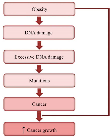 Obesity-induced DNA damage and dysregulation of the DNA repair pathways can lead to increased mutation rate and transformation of healthy tissues to cancer [25,122,123,124,125].