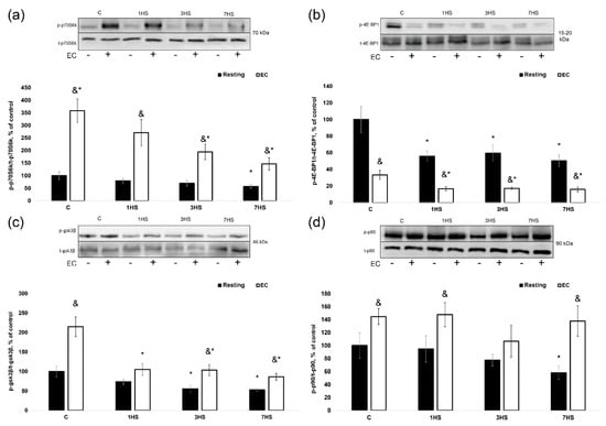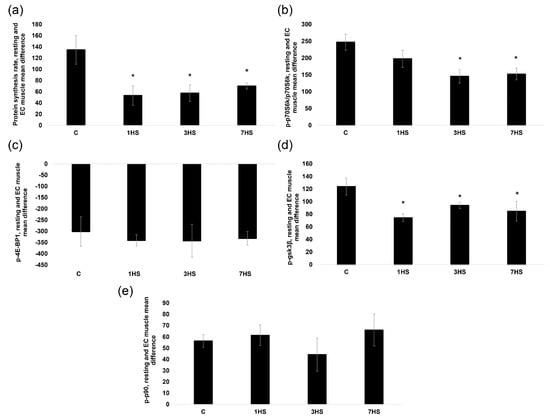 - Fluckey, J.D.; Dupont-Versteegden, E.E.; Knox, M.; Gaddy, D.; Tesch, P.A.; Peterson, C.A. Insulin facilitation of muscle protein synthesis following resistance exercise in hindlimb-suspended rats is independent of a rapamycin-sensitive pathway. Am. J. Physiol. Endocrinol. Metab. 2004, 287, E1070–E1075. [Google Scholar] [CrossRef] [PubMed]