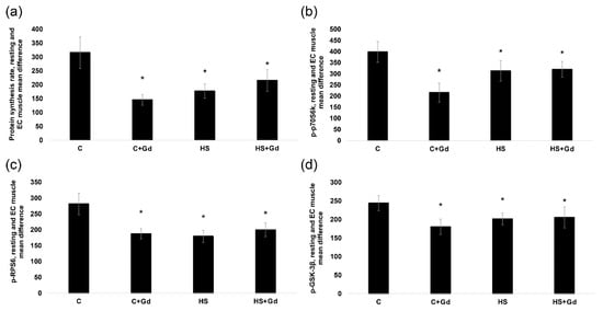 - Loughna, P.; Goldspink, G.; Goldspink, D.F. Effect of inactivity and passive stretch on protein turnover in phasic and postural rat muscles. J. Appl. Physiol. 1986, 61, 173–179. [Google Scholar] [CrossRef] [PubMed]
