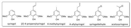 - Wittkowski, R.; Ruther, J.; Drinda, H.; Rafiei-Taghanaki, F. Formation of Smoke Flavor Compounds by Thermal Lignin Degradation. ACS Symp. Ser. 1992, 490, 232–243. [Google Scholar]